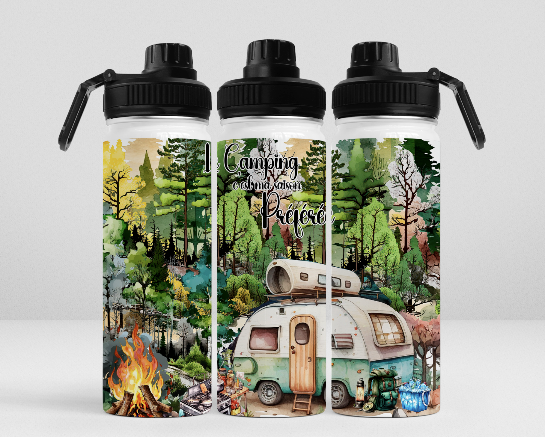 -Gourde isotherme refermable comprenant 2 bouchons, 20 oz;