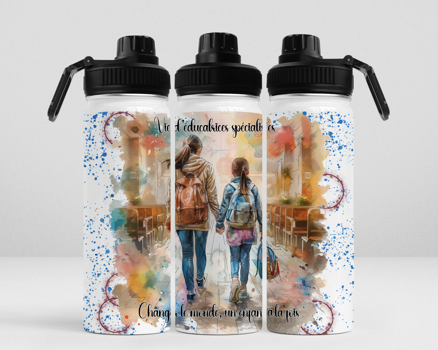 -Gourde isotherme refermable comprenant 2 bouchons, 20 oz;