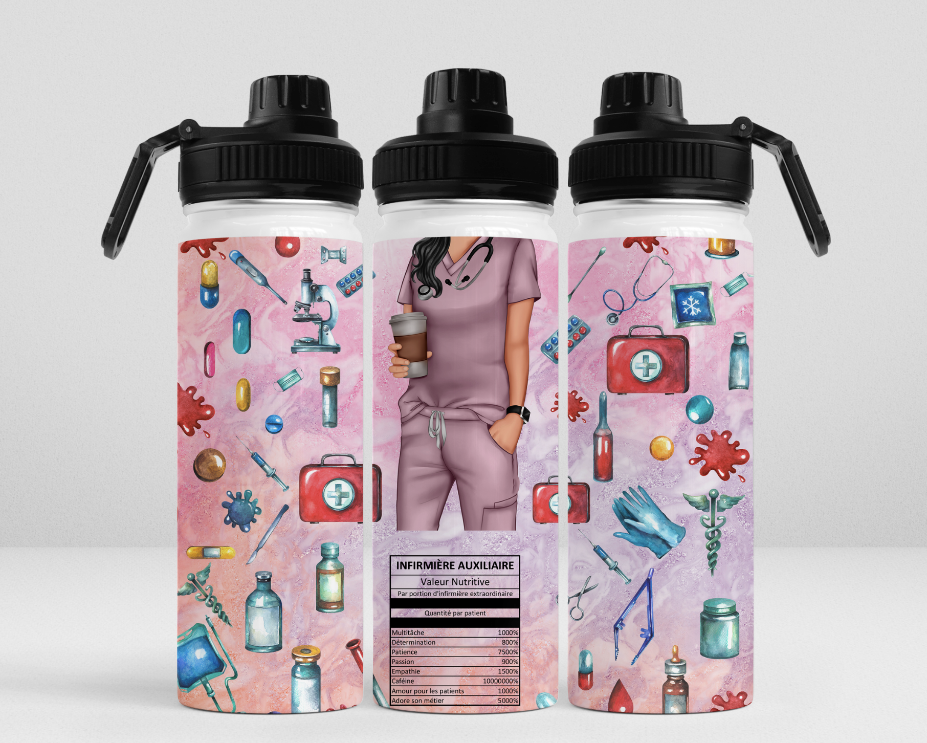 -Gourde isotherme refermable comprenant 2 bouchons, 20 oz;