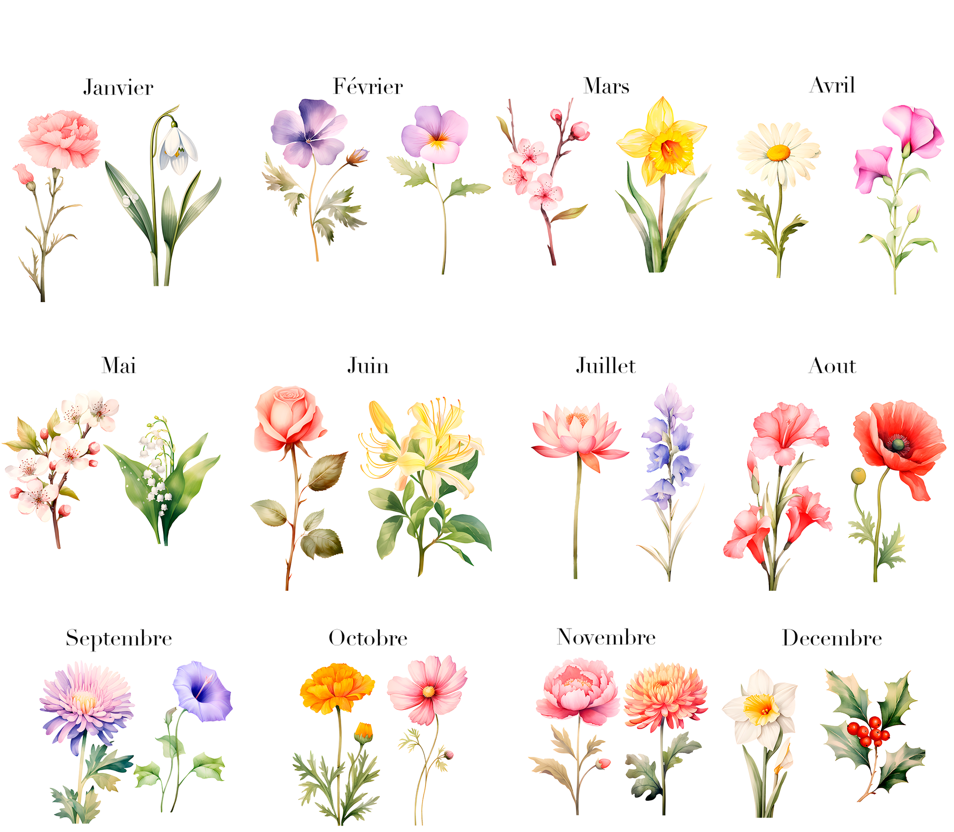 Représentez votre famille/groupe avec chaque fleurs de naissance.