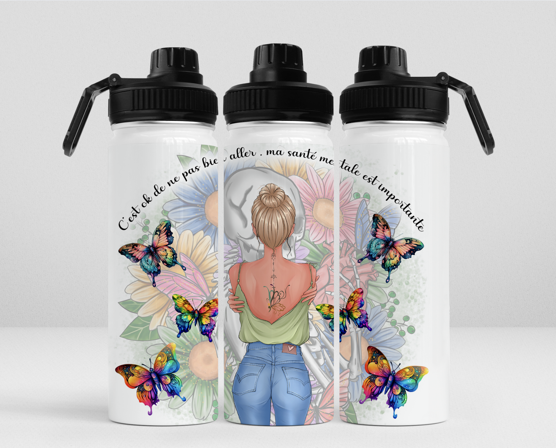 -Gourde isotherme refermable comprenant 2 bouchons, 20 oz;