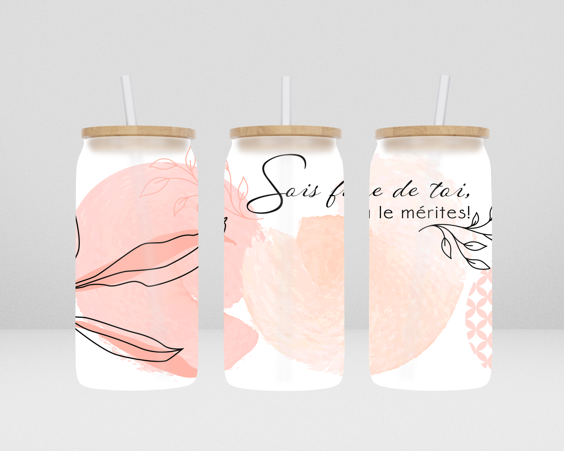 -Verre avec couvercle en bambou, 16 oz, viens avec une paille en verre