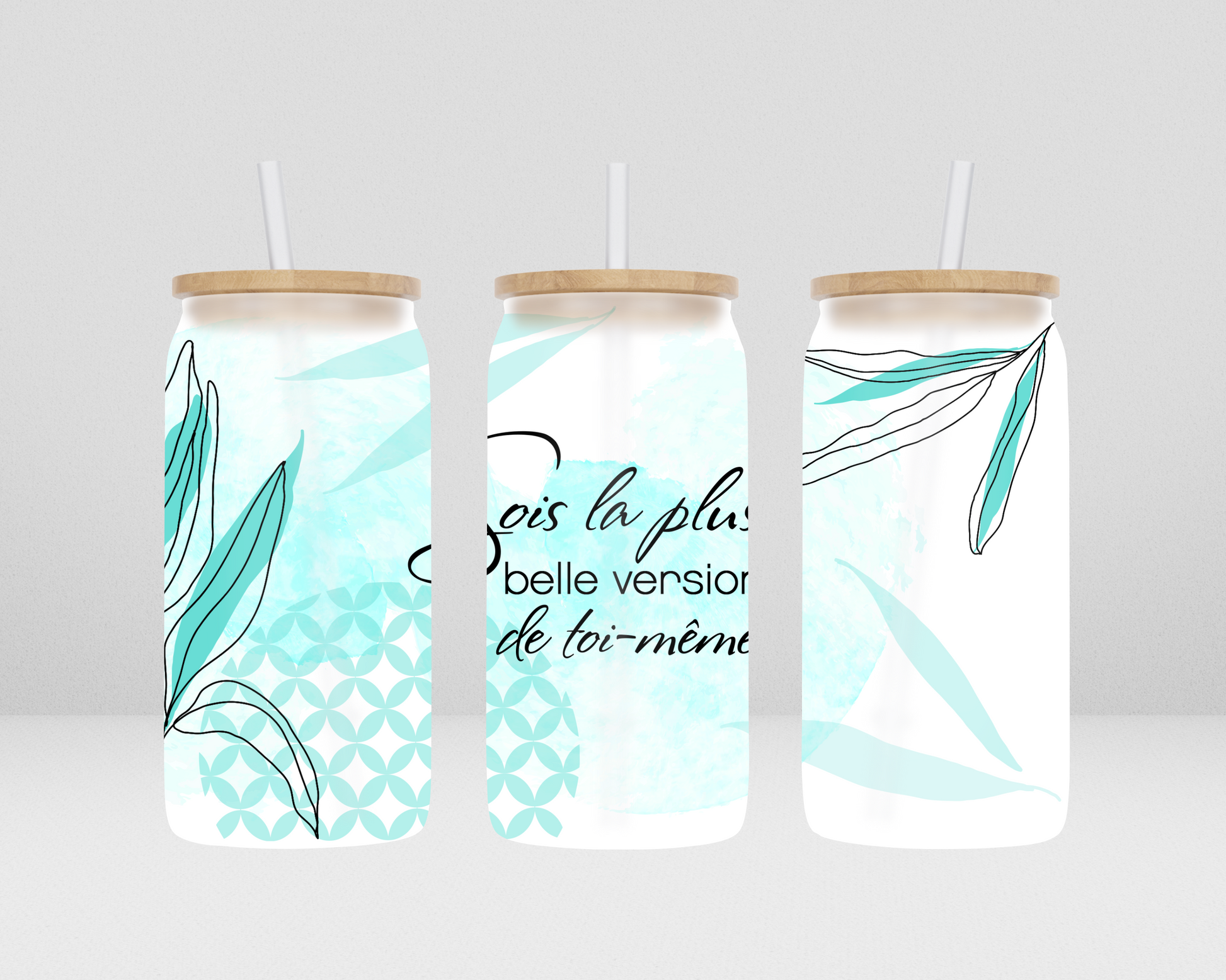 -Verre avec couvercle en bambou, 16 oz, viens avec une paille en verre