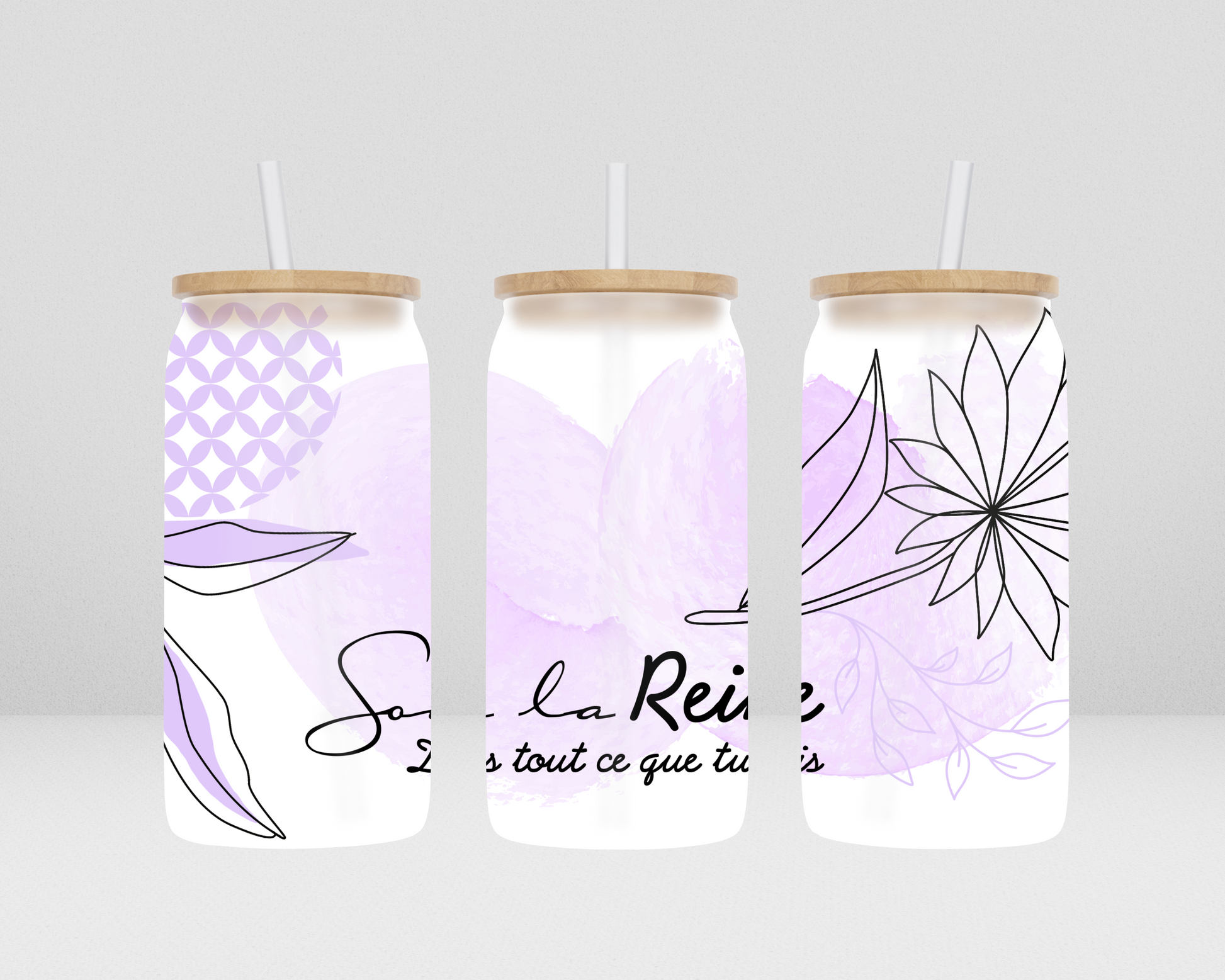 -Verre avec couvercle en bambou, 16 oz, viens avec une paille en verre