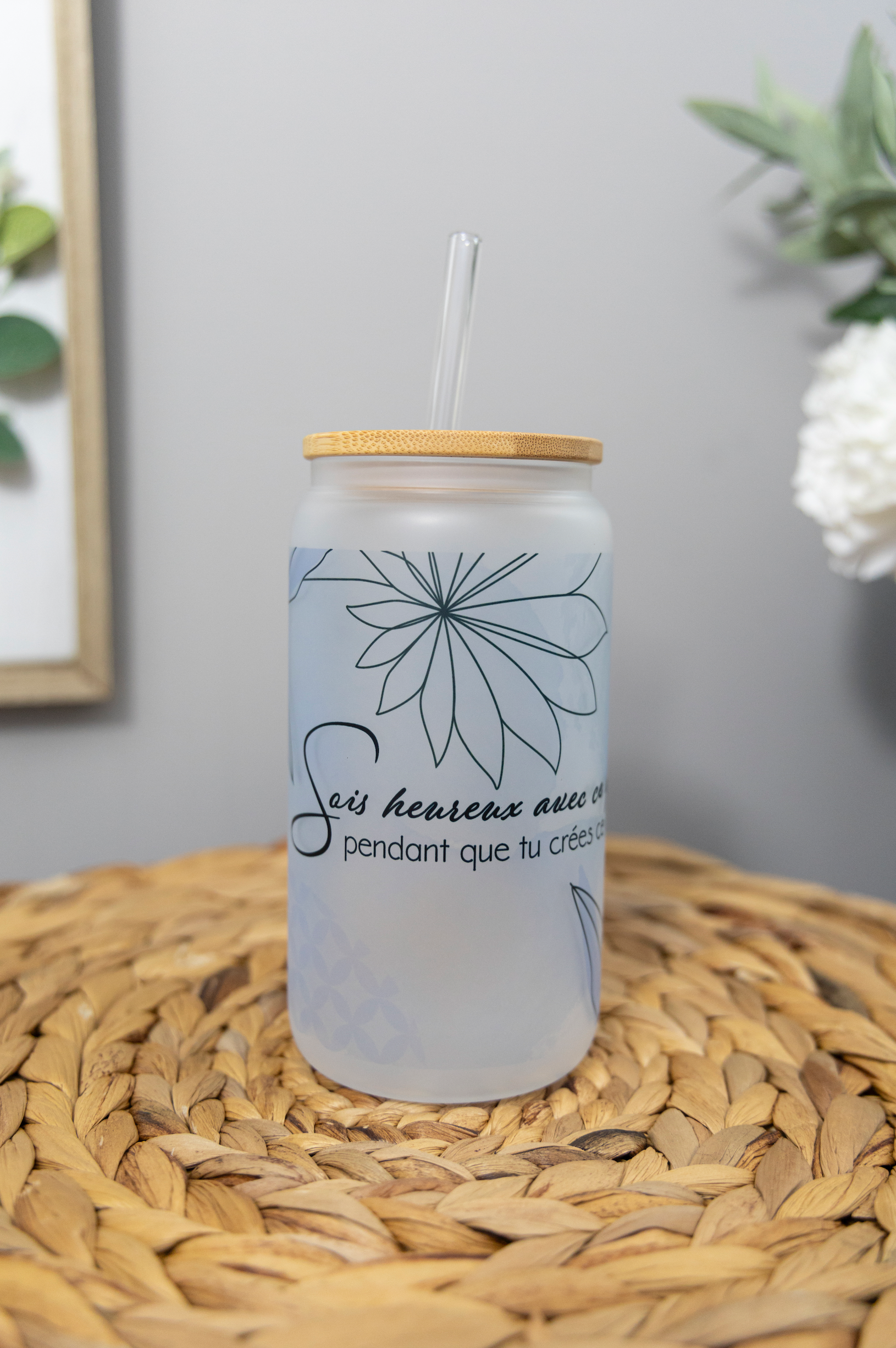 Verre "Sois heureux avec ce que tu as, pendant que tu crées ce que tu veux." (PÀP)